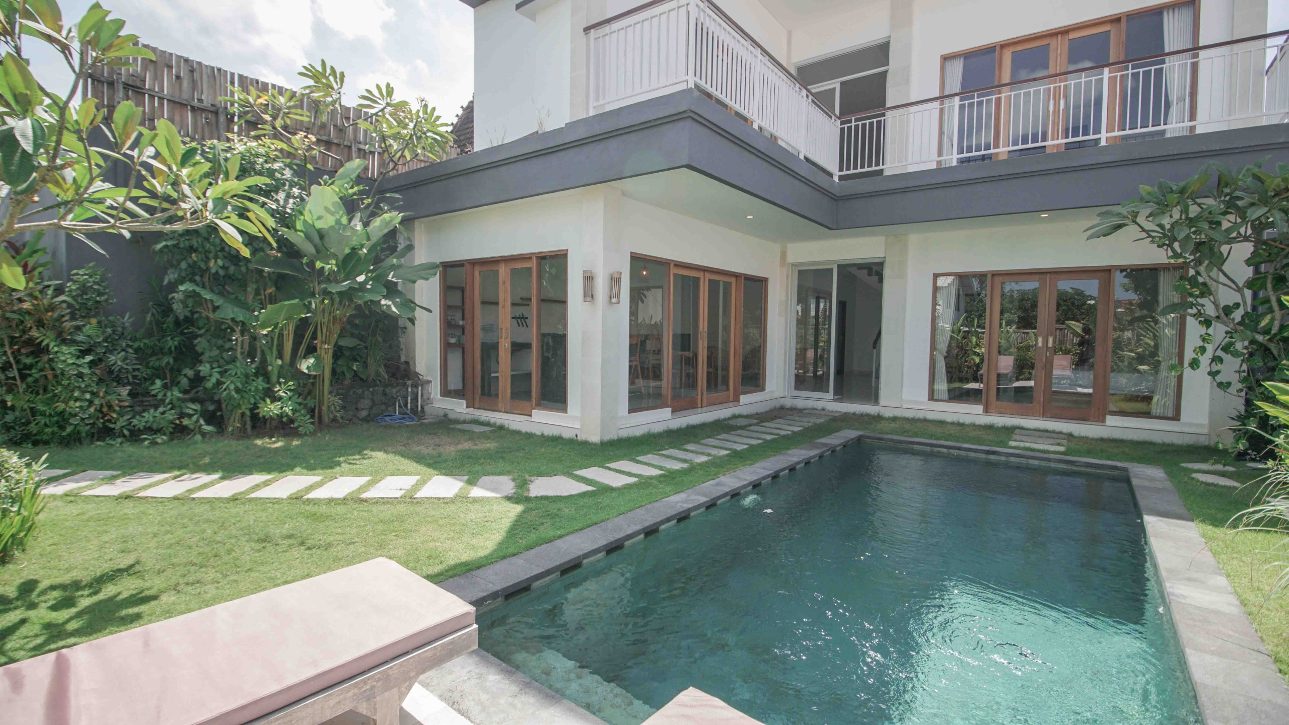 Welcome to your tranquil oasis in Pererenan, where modern meets serene natural beauty. This 3-bedroom villa is a perfect blend of contemporary design and traditional Balinese elements, offering you a peaceful retreat just minutes away from the beach. Three spacious bedrooms, each elegantly designed and equipped with comfortable beds, ample storage space, and large windows that overlook the lush greenery outside. Step into the enclosed-plan living area, seamlessly connected to the outdoor patio and swimming pool. The enclosed living space is tastefully decorated with contemporary furnishings, creating a cozy yet sophisticated atmosphere. Now available for rental in Pererenan!
