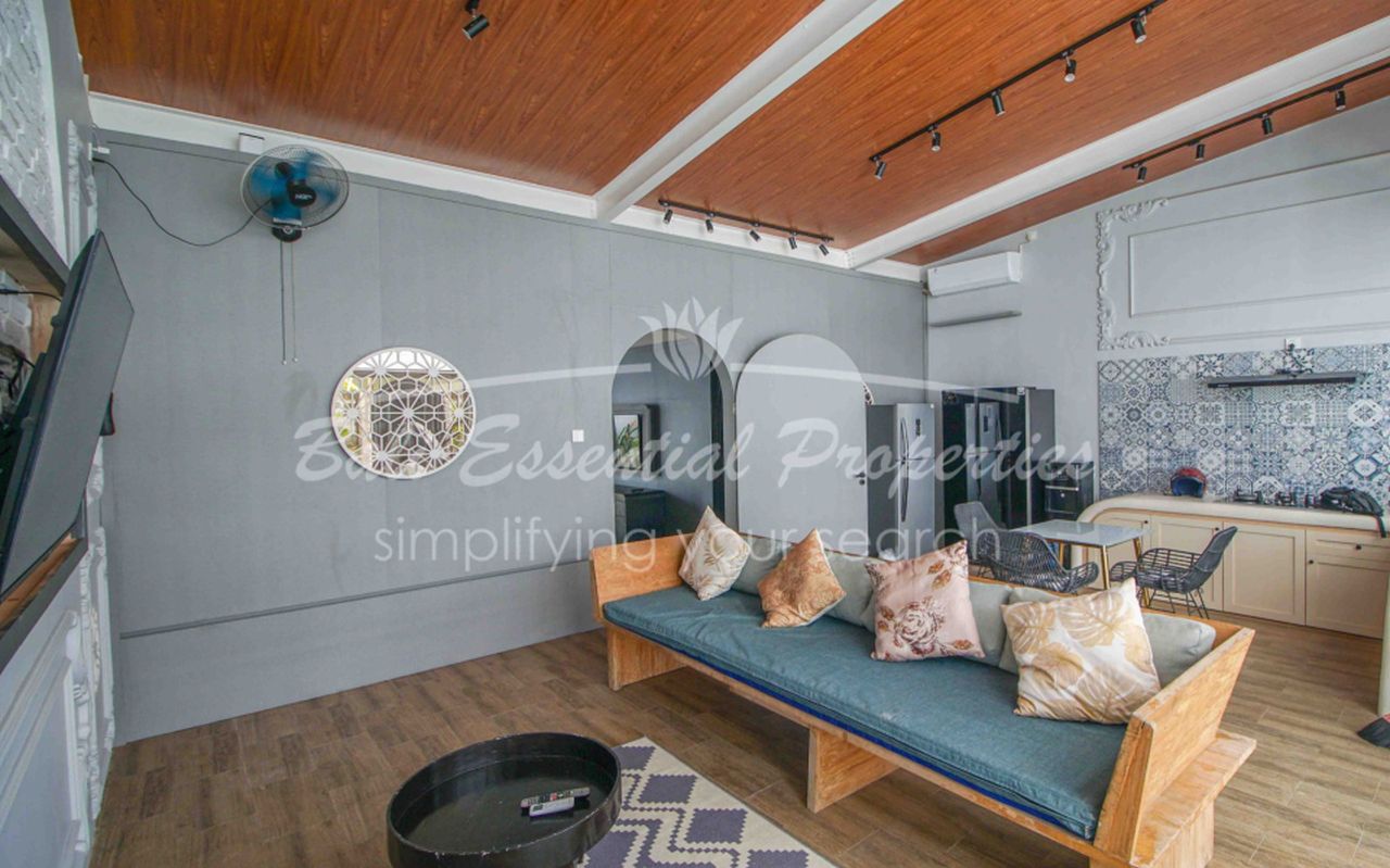 This cozy 1 bedroom villa is perfect for a couple or solo resident looking to enjoy the best of Bali living in the heart of Legian, Kuta. Set on a 100 sqm land, the villa features a fully enclosed living room, dining area, and kitchen, all fully furnished in a stylish modern design. The compact yet functional single-floor layout offers both comfort and privacy.