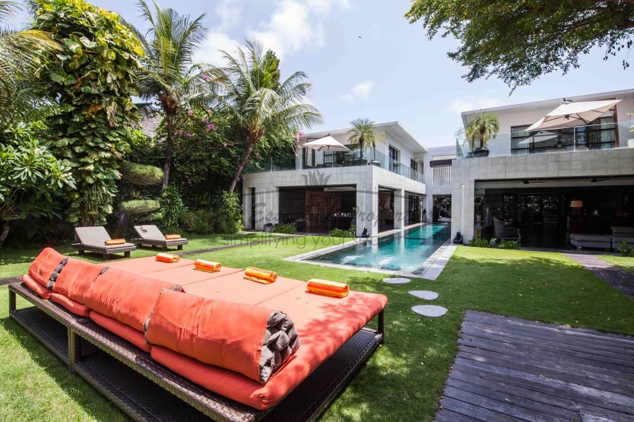 5 bedroom villa an exceptional contemporary villa. Located in Seminyak, the heart of the most sought after area of Bali. 20 minutes away from the airport, just 3 minutes drive to the beach and with shopping and international dining just a five-minute walk away. This villa blends contemporary design with a breathtaking amount of open spaces and closed areas offering a tropical living concept typical traditional Valinese architecture. The elegant swimming pool that crosses the villa is the key element, thus creating a sense of freshness at all times of day and night. Now available for rent in Seminyak!