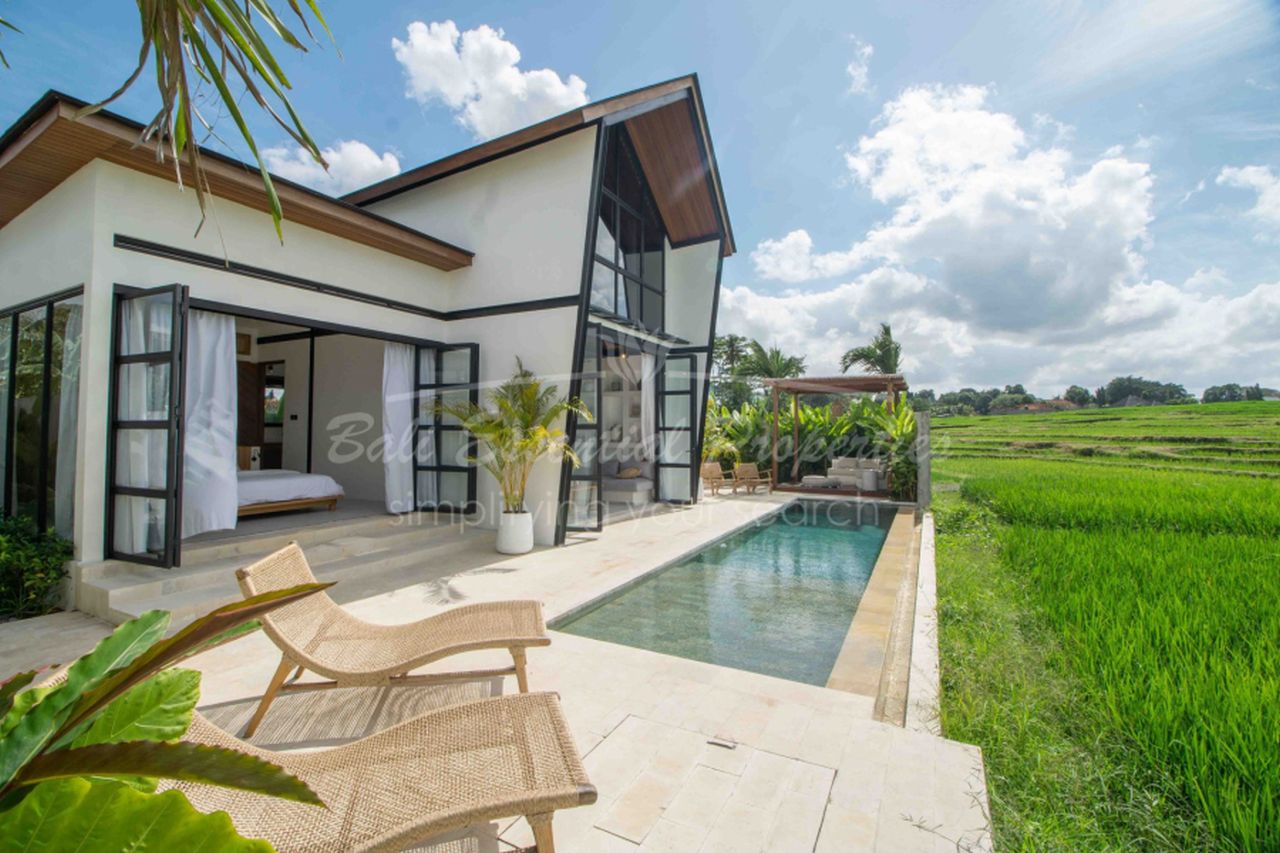 Outside, you will find a beautifully landscaped garden with a tropical pool and well designed seating area where you can enjoy peaceful moments overlooking the lush rice fields surrounding the property. Whether you’re sipping your morning coffee on the terrace or hosting a BBQ with friends, this outdoor oasis is sure to become your favorite spot to unwind.